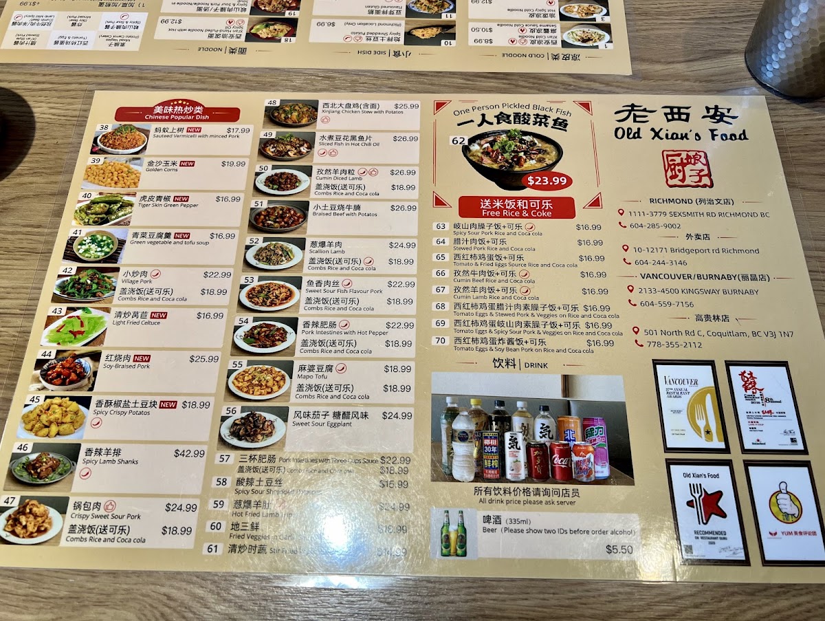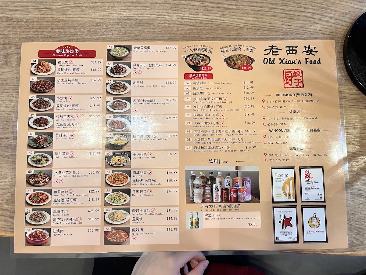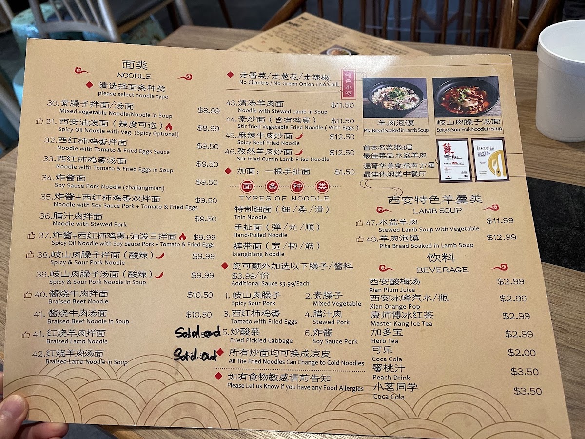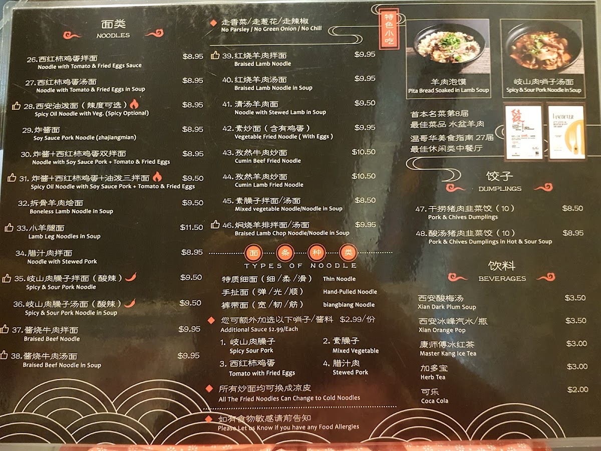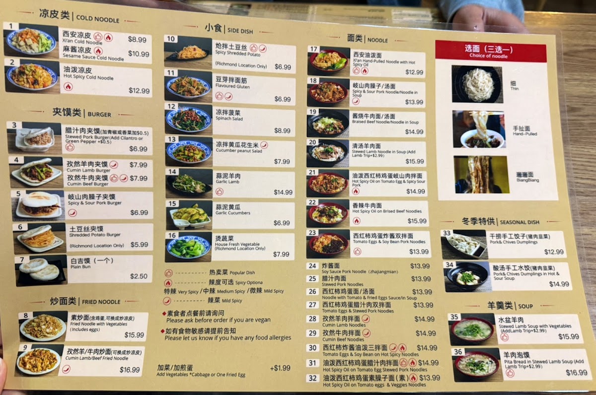 Old Xian's Noodle House, Richmond Menu